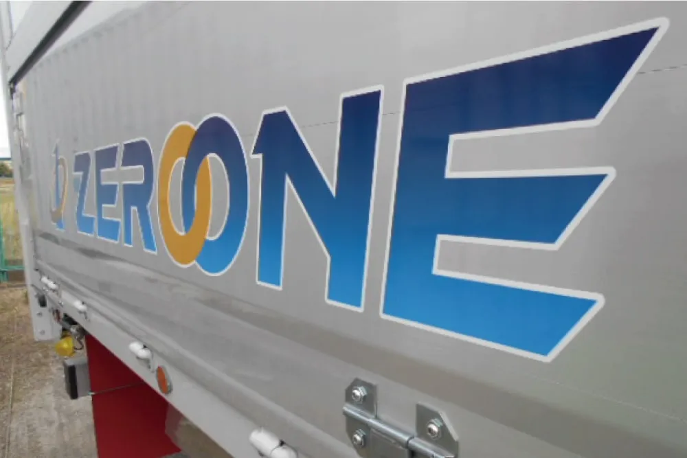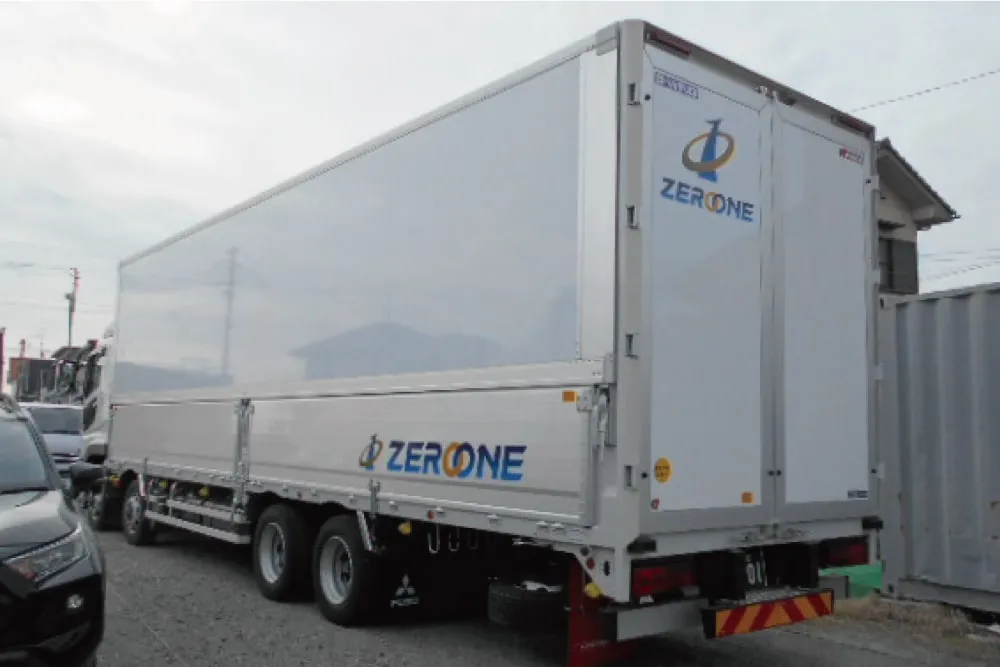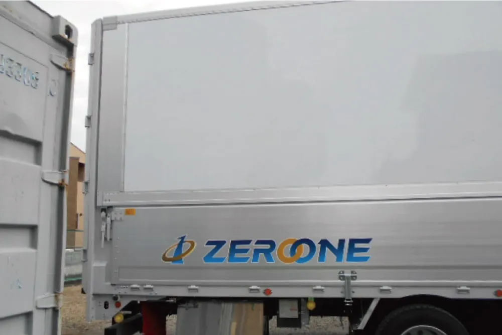 運送会社様のトラックに付ける社名ロゴのステッカーの製作、施工を担当しました。