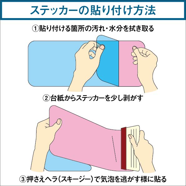 使い方:貼る場所の水気・ホコリ・油をよく落としてから貼ってください。剥がす際はドライヤー等で温めながらだと比較的容易です。