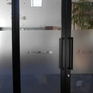 例えば、お店の店名や営業時間などを表示したり、すりガラスのようなフィルムで建物の中が見えないようにするために利用されています。