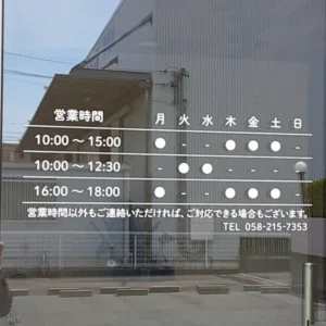 主に、大きな窓ガラスを始め、ガラス戸やショーケースなどのガラス部分に使用されるサインのことを言います。