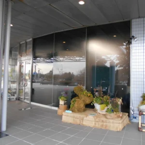 例えば、お店の店名や営業時間などを表示したり、すりガラスのようなフィルムで建物の中が見えないようにするために利用されています。
