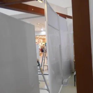 システムパネルは、既製品を使用するため、既製品の価格と設営費のみとなります。したがって価格も木工パネルより抑えることができる場合が多いです。