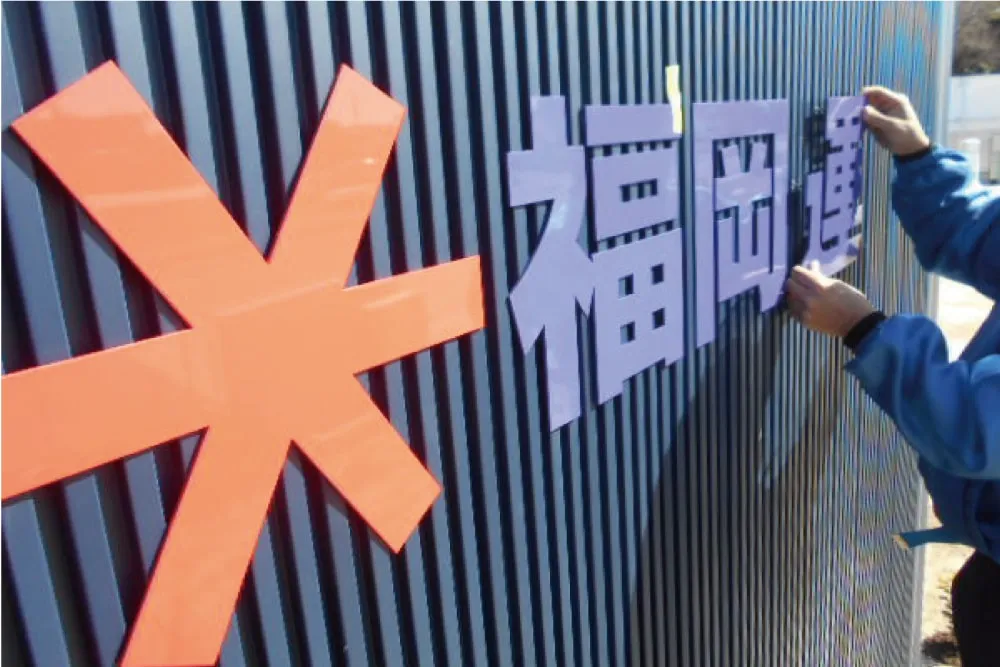 ↓こうした大きな看板はアルミ複合板を何枚も並べるような形で製作がされております
