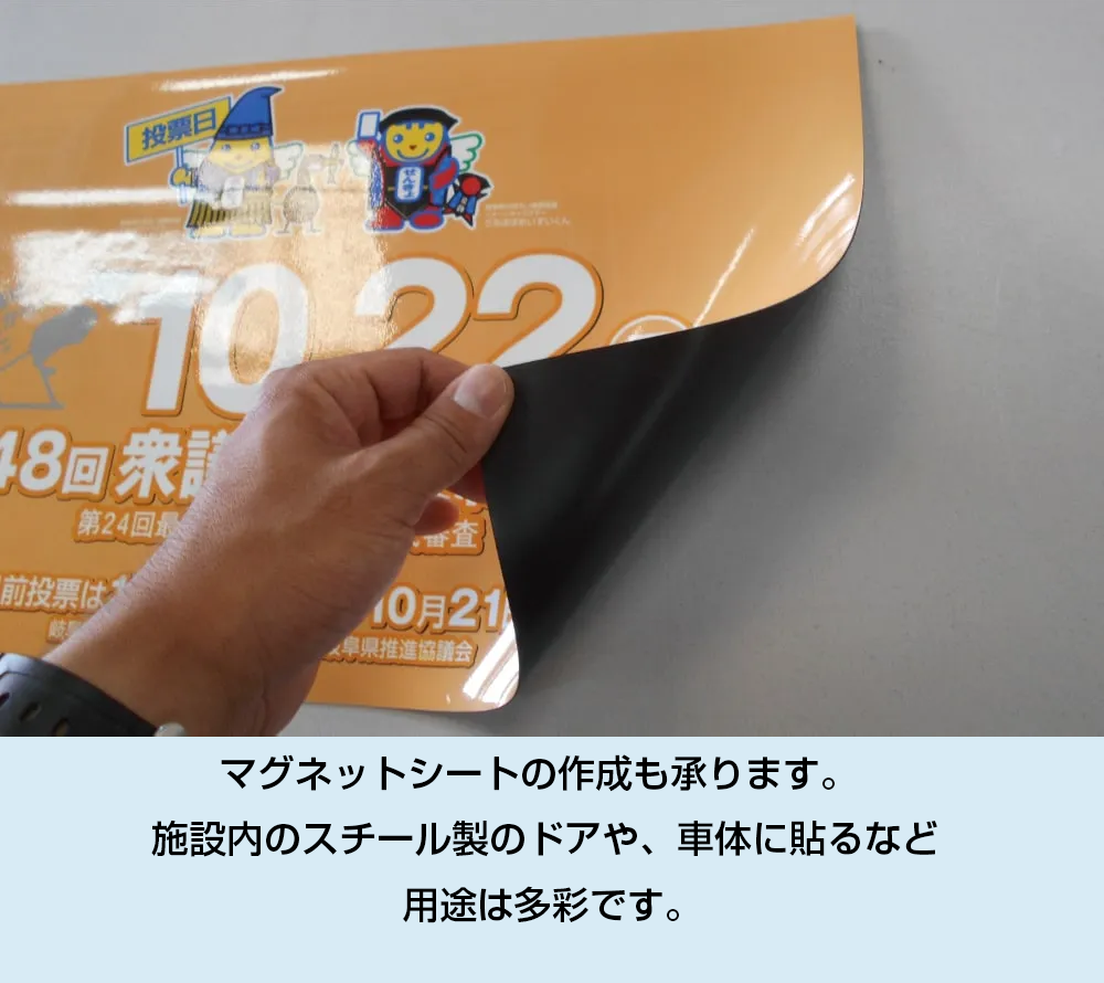 車体に貼る場合は異方性マグネットシートをオススメしております。