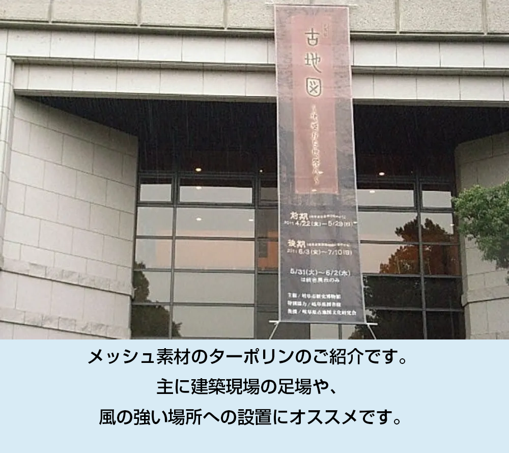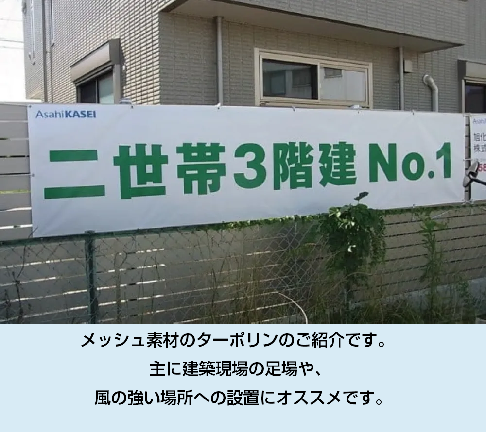 ハトメ加工・2重縫製・ロープ縫込み加工・スリット加工など各種加工に対応可能です。ご希望の加工方法などございましたらお申し付けください。