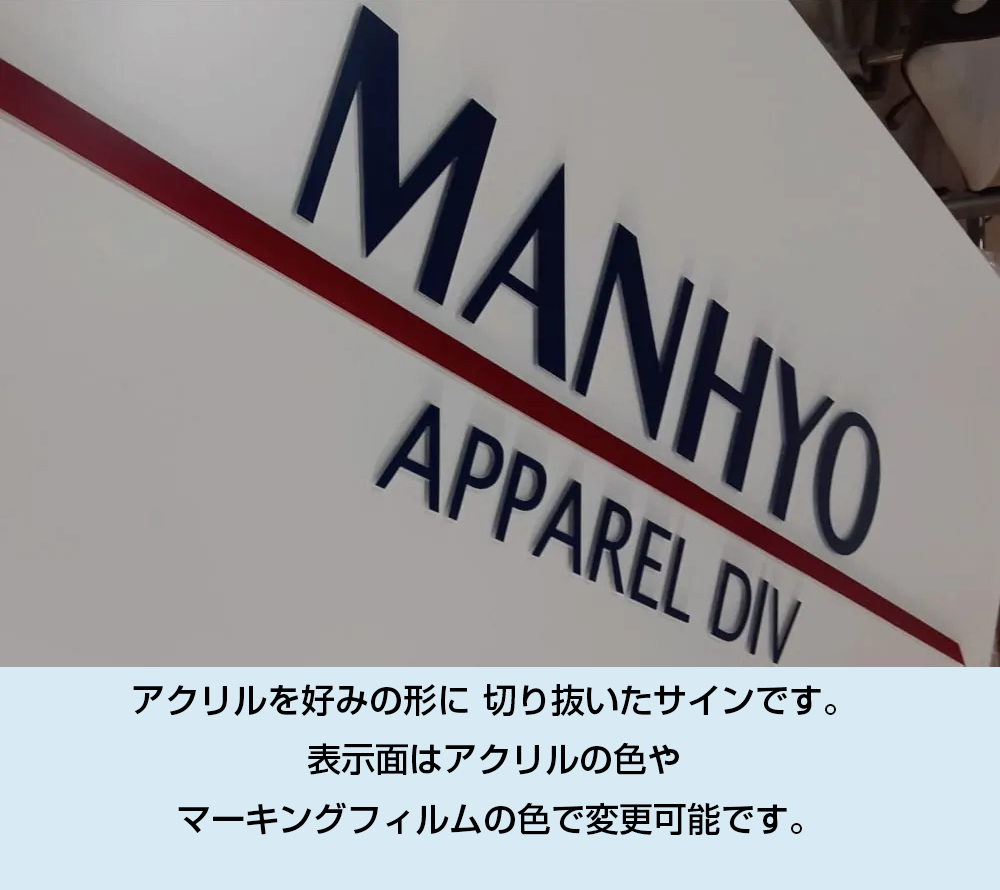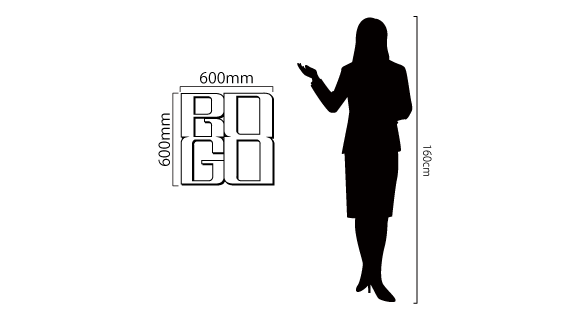 厚みは素材によって3~50mm程度で、立体感を出すことが出来ます。屋内外のロケーションに合わせた素材のご提案をさせていただきます。