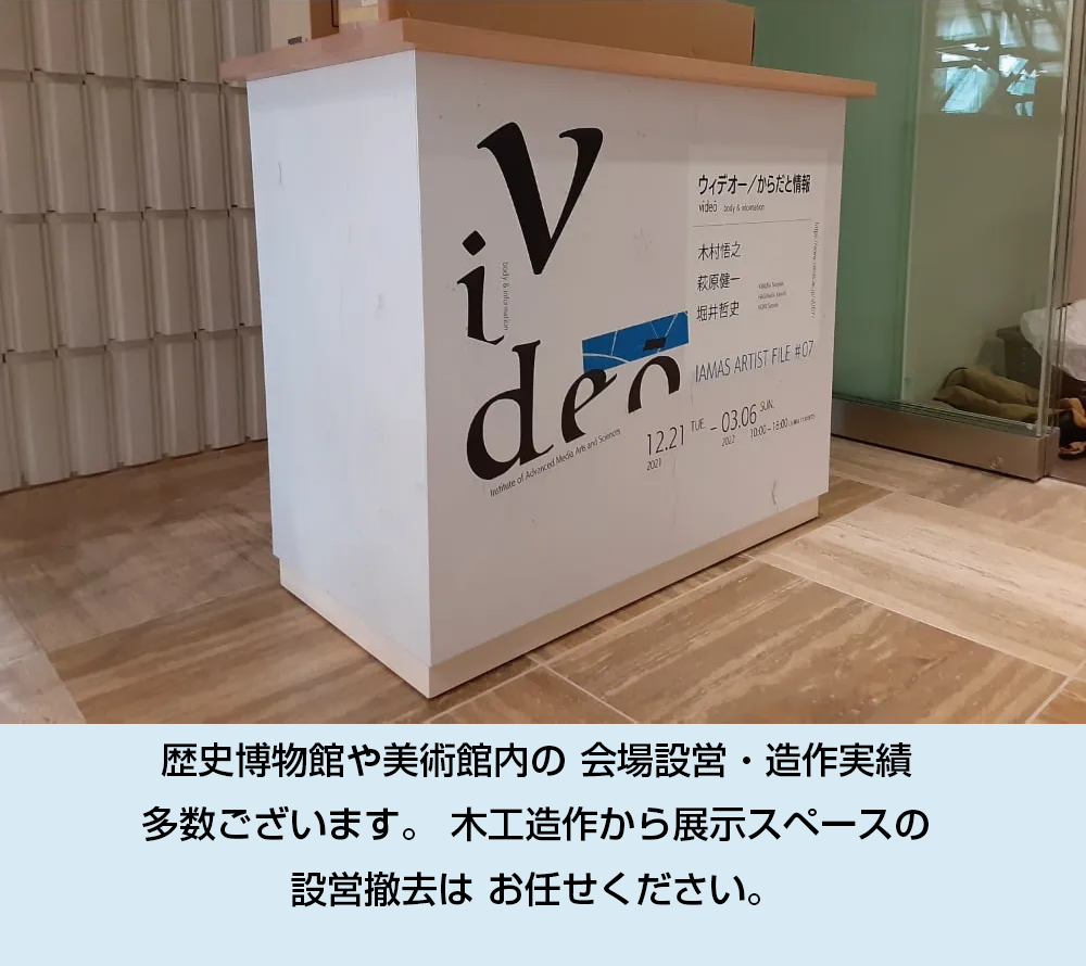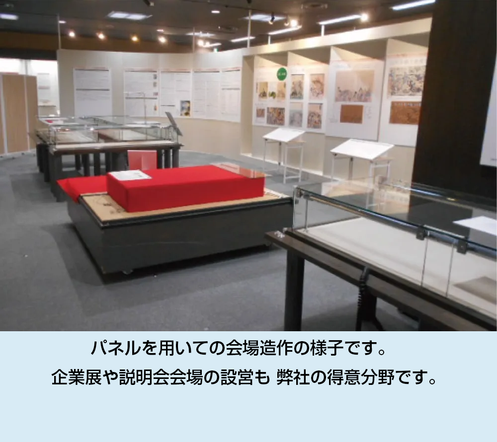 岐阜県を始め岐阜市・垂井町・各務原市など近隣の市町村への実績が豊富です。会場全体の構成以外の、細かなキャプションやタペストリーの製作も請け負います。