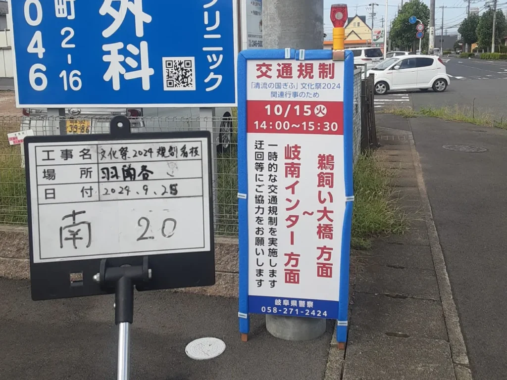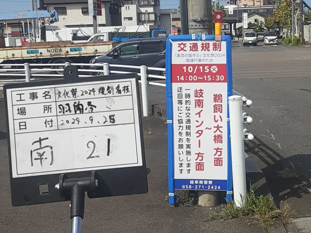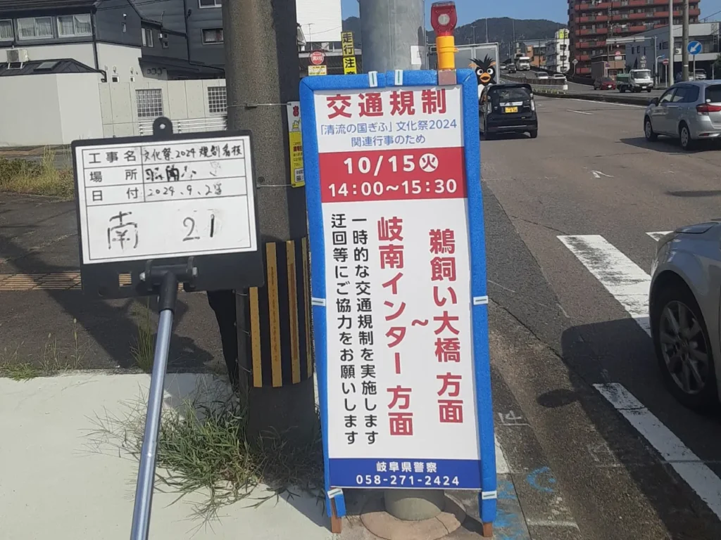 「清流の国ぎふ」文化祭2024交通規制看板設置の様子